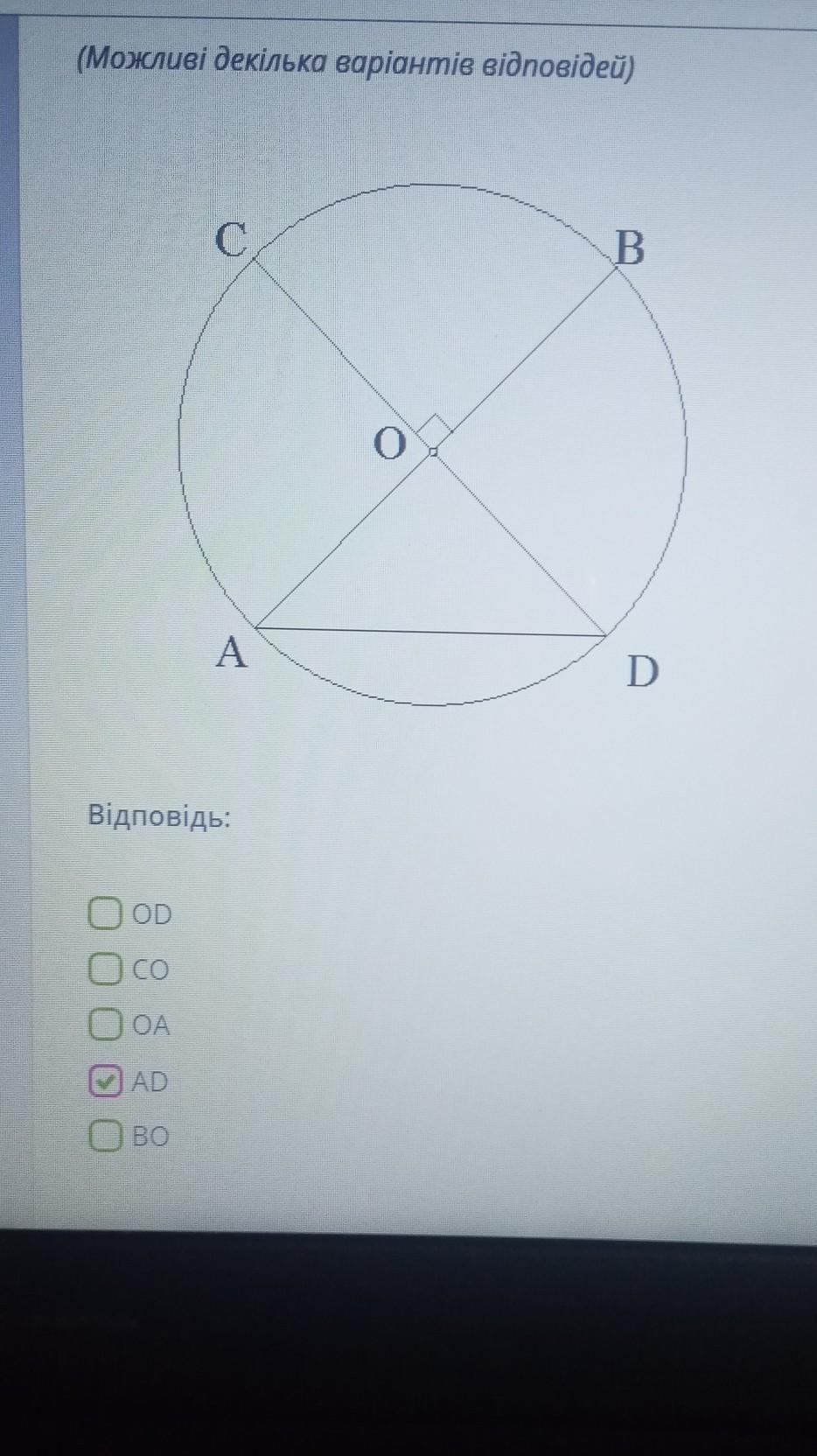 хорда - это отрезок соединяющий две точки на окружности. У вас это АD, который соединяет точки окружности A и D