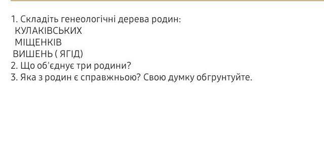 2. Всі три родини об"єднує одна країна і історія цієї країни: революції, війни, роки голодомору тощо. Крім того, якщо вони жили в одному містечку, або поруч, то, звичайно, хтось з кимось був знайомий. Франя Кулаківська відбила нареченого у Клави - прапрабабусі Софійки, Гордій Кулаківський, обдуривши Данила Міщенка, заграбастав його майно, але й змушений був взяти під опіку дітей Міщенка. Нащадок Міщенків - Валентин Білий - сватався до тітоньки Софійки - Сніжани.