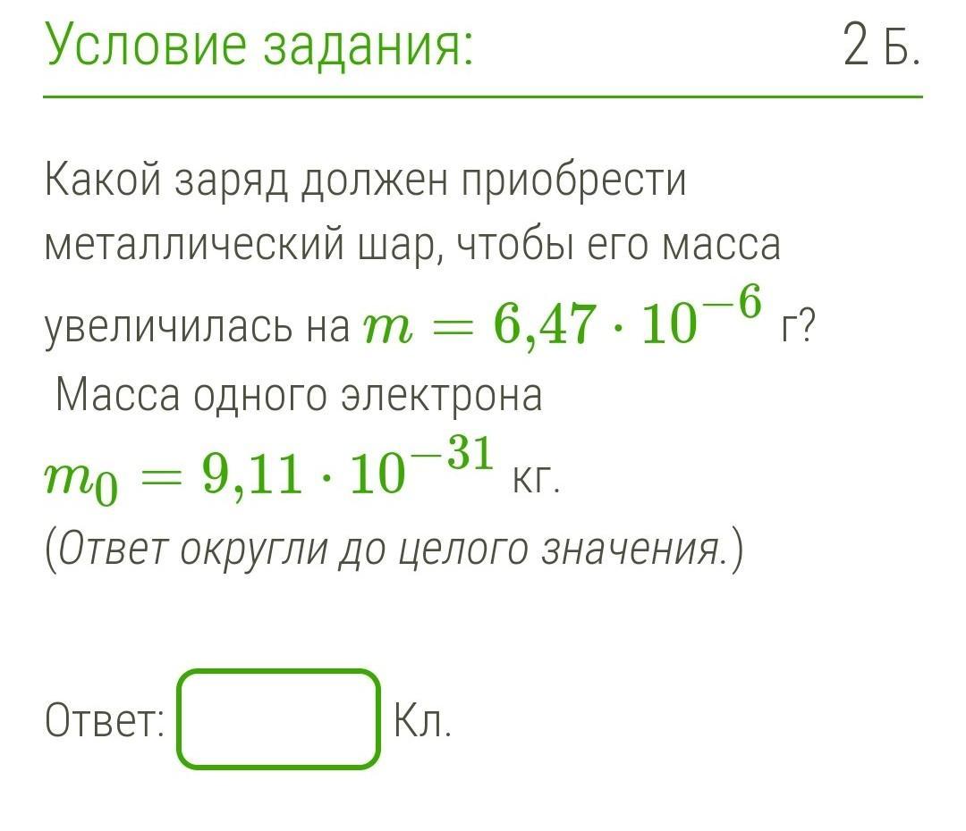 N=m/mo=6.47*10^-9/(9.11*10^-31)≈7.1*10^21 (шт электронов)