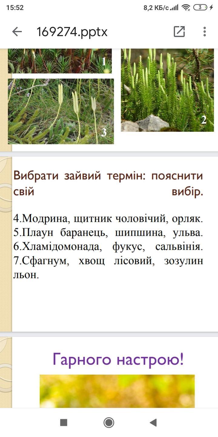 4. Зайва модрина, бо вона хвойна рослина, а щитник і орляк папороті