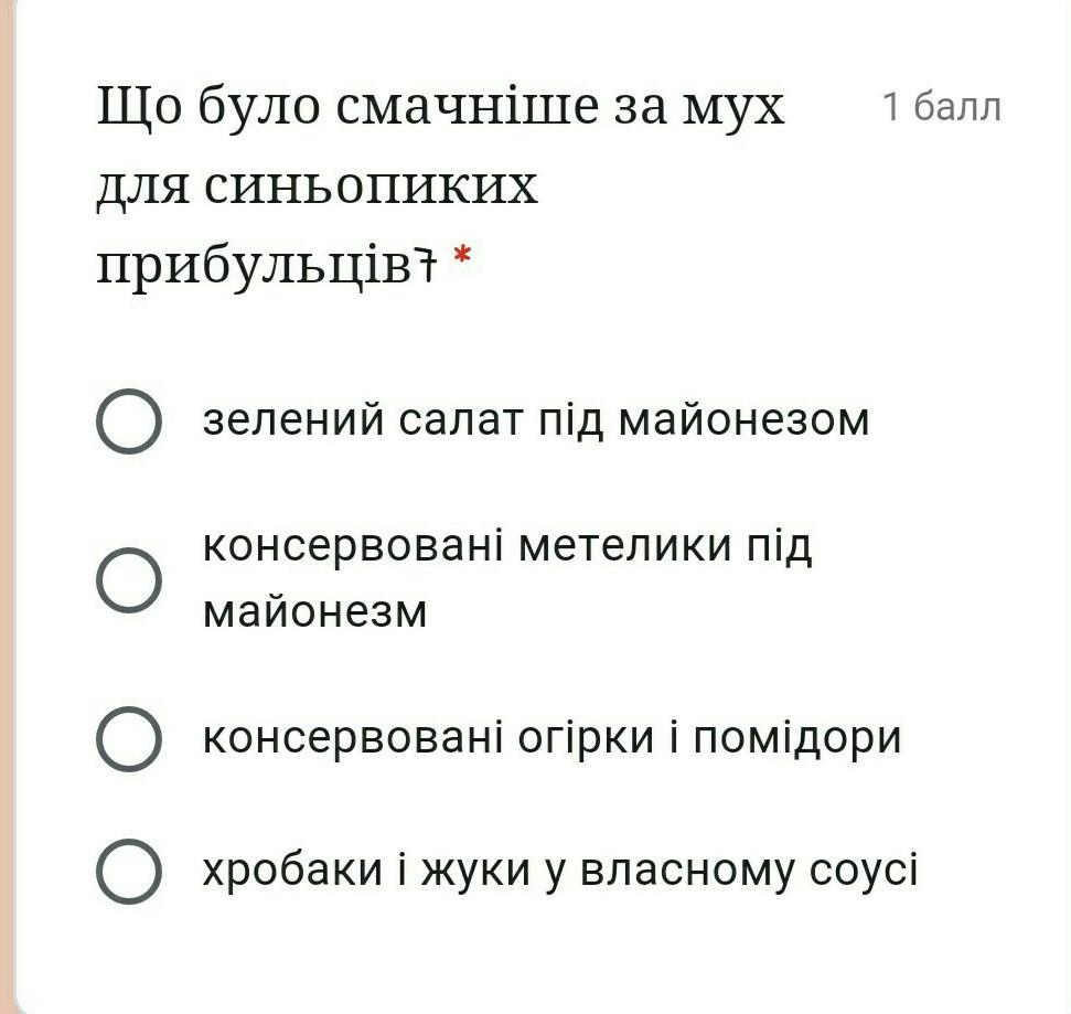 Відповідь: для прибульців смачнішими за мух були консервовані метелики під майонезом.