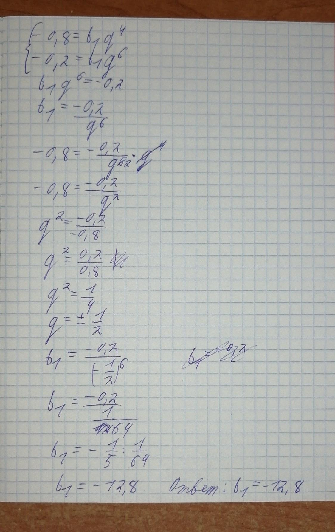 b1= b5 ÷ q⁴= -0,8 ÷ (0,5)⁴= -12,8