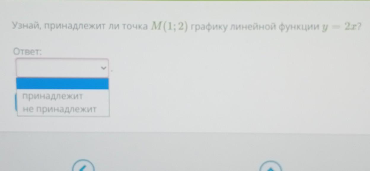 Узнай, принадлежит ли точка M (1; 2) графику линейной функции y — 2х?