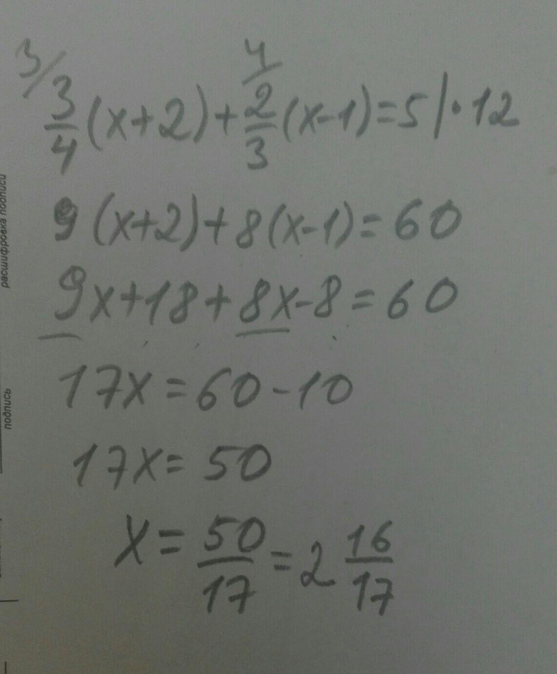 Ответ: х= 2 16/17
