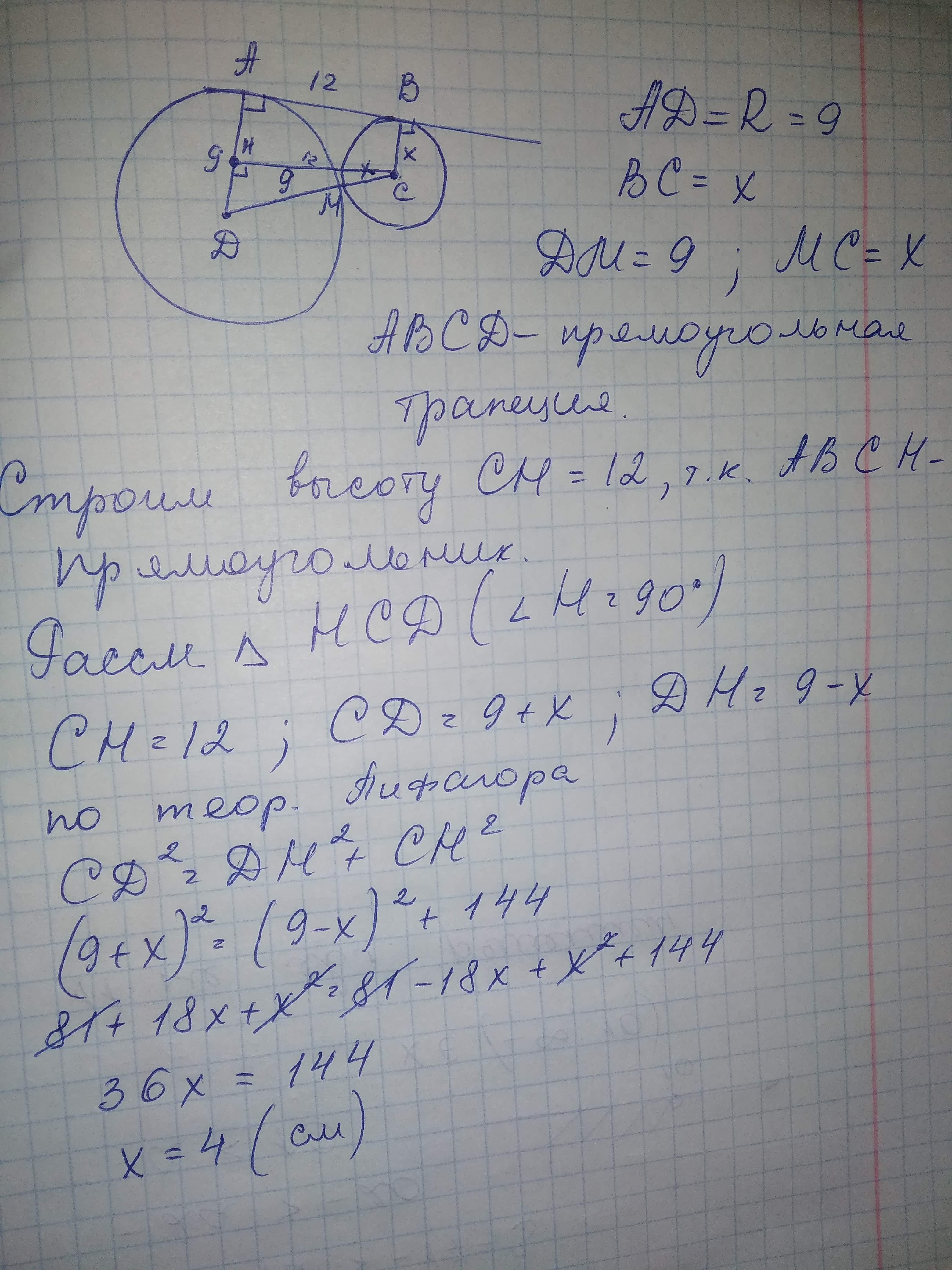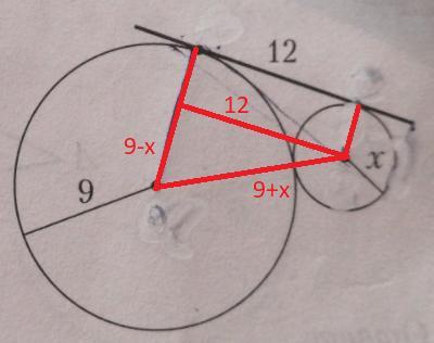 Еще важно написать, что центры окружностей и точка их касания лежат на одной прямой. Только поэтому CD=9+x.