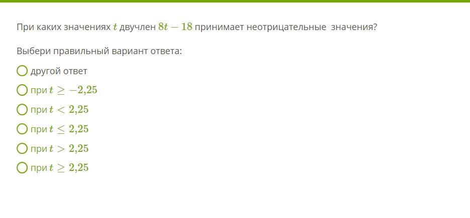 Правельнфй ответ. Последний в списке. при t больше или равно 2.25.