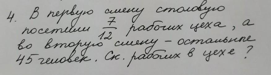 1-7\12= 12\12 - 7\12= 5\12 рабочих посетили столовую во 2 смену
