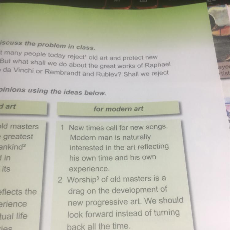 Даю 60 балов кто напишет мне есе про modern art. На фотографии есть табличка. В табличке находится topic sentences надо начать с этих предложение и ещё впишите в есе linking words это обязательно!!! Все выполняем все строго по плану досвидания
