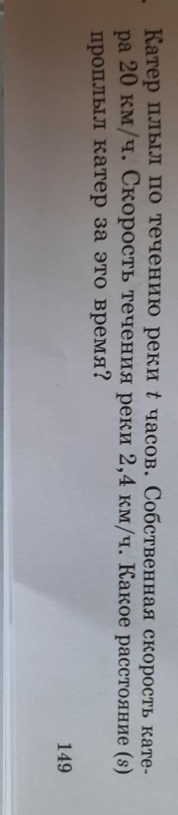 Пошаговое объяснение: путь катера равен произведению скорости катера по течению на время в пути. Скорость катера по течению равна сумме скоростей собственной скорости катера и скорости течения реки: V=Vк+Vр=20+2,4=22,4км/ч. Тогда путь будет равен: S=22,4*t=22,4t км