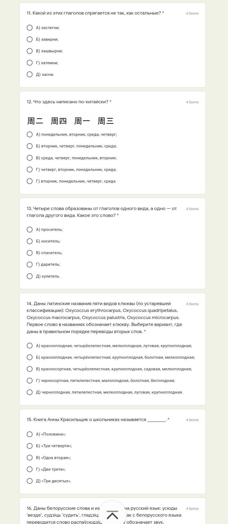 4) крупноплодная, четырехлепестная, мелкоплодная, пуговая, крупноплодная.