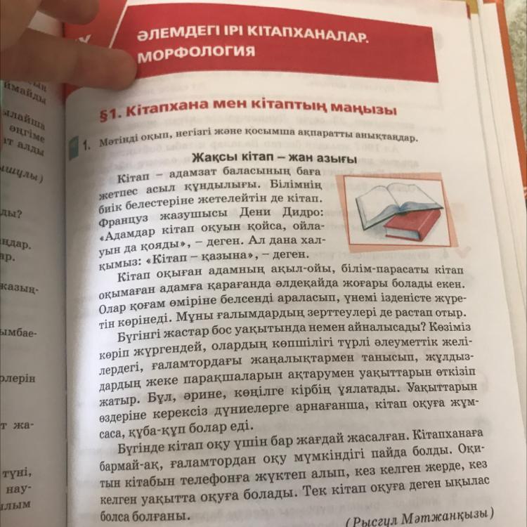 Жақсы кітап-жан азығы Мәтінді оқып, негізгі және қосымша ақпаратты анықта.