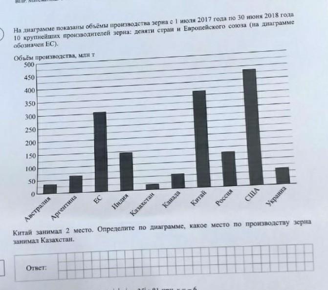 Видим, что у Казахстана наименьшие показатели (самый низкий столбик). Т.к. места распределяются по убыванию показателей, Казахстан занял последнее место. Учитывая, что всего 10 участников, Казахстан занял 10е место
