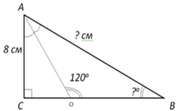 2) AO-биссектриса ∠CAB, значит по теореме о сумме углов в треугольнике ∠B=180-120-30=30°