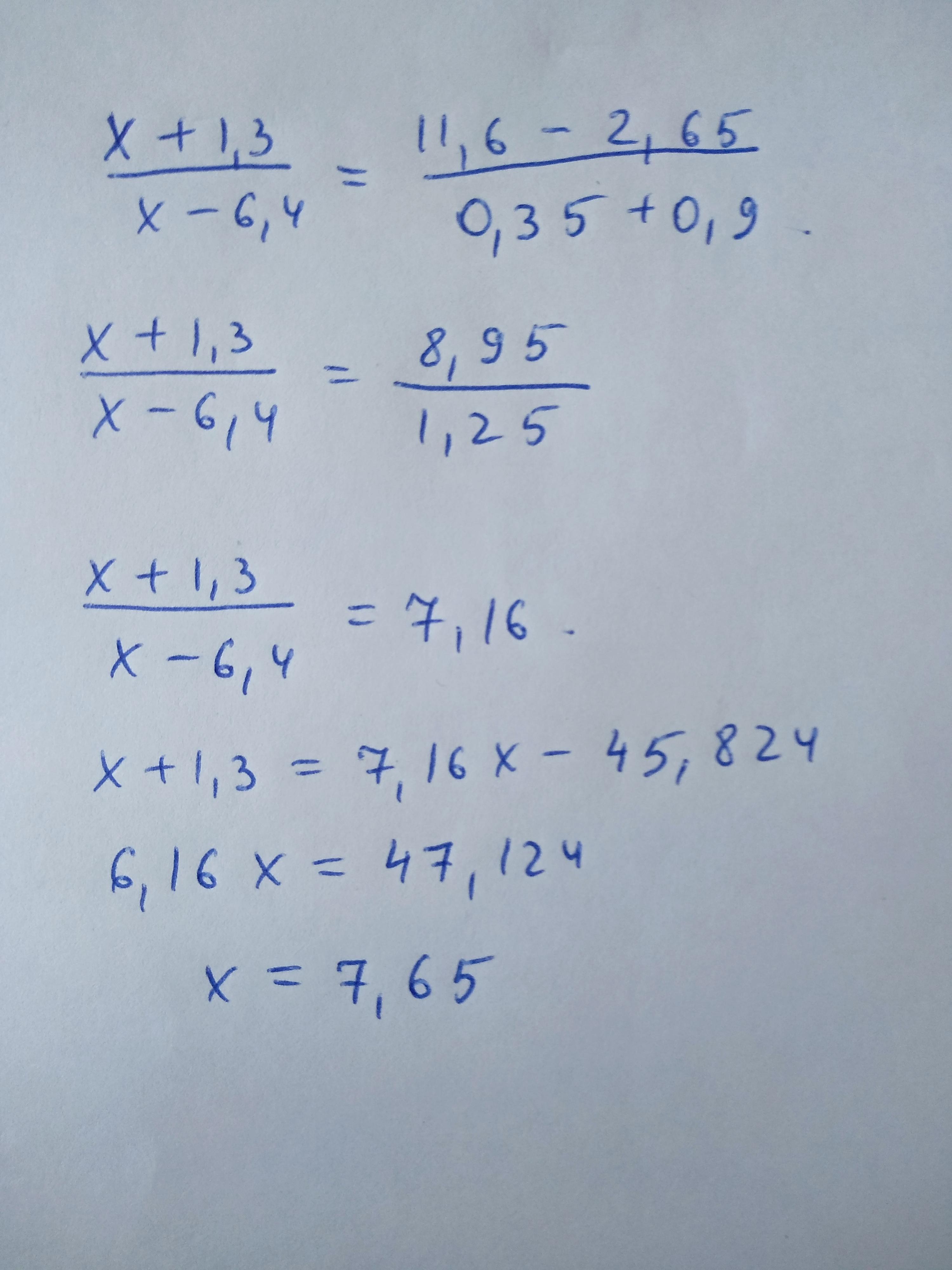 х+1,3 / х-6,4 = 8,95 / 1,25