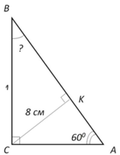 В трикутнику ВСК є кут 30°, а за властивістю кута 30°, катет, що лежить напроти нього у два рази менший, ніж гіпотенуза. Значить гіпотенуза(ВС)=8*2=16см