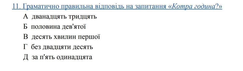 Д) за п'ять одинадцята.