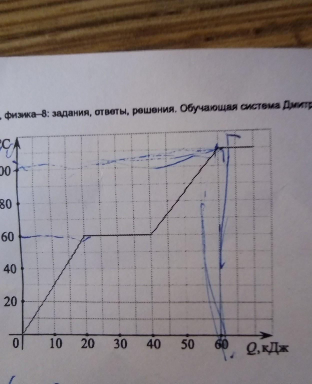 На графике показана зависимость температуры некоторого вещества от подведённого к нему количества теплоты. Найдите удельную теплоёмкость этого вещества при изменении его температуры от 70 C до 100 C. Масса вещества 0,5 кг . ПОМОГИТЕ Пожалуйста .Обьясните