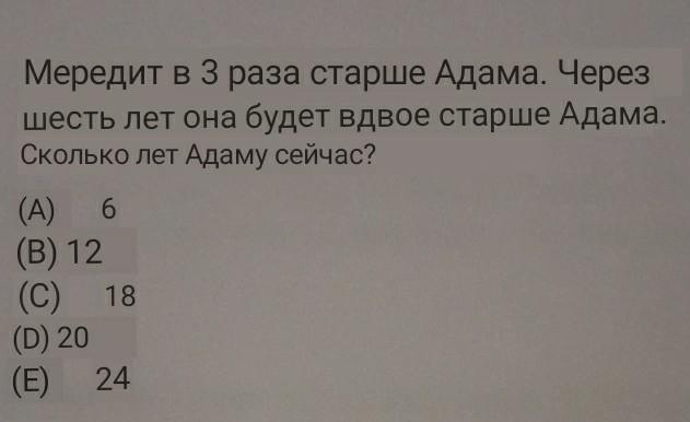 спасибо но у меня ещё один вопрос.Так Адаму 6 или 12?!Сперва иы написали что ответ А) но по решению ответ В)