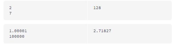 Нельзя использовать встроенную операцию возведения в степень, в силу особенностей тестирующей системы избегайте слова pow в названии функции.