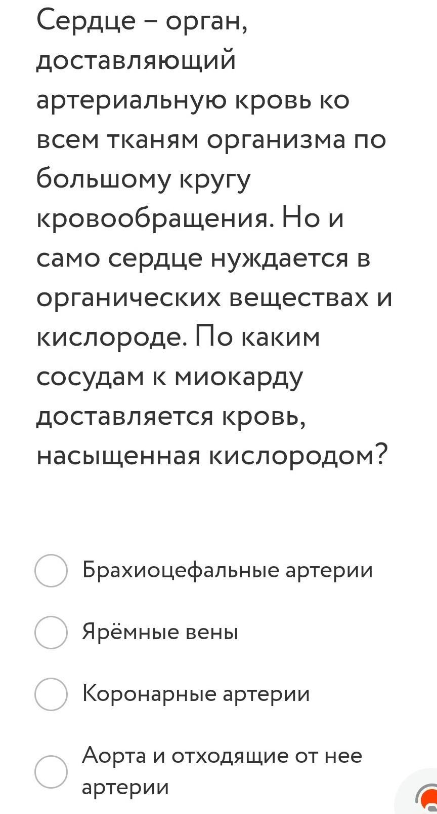Ответ: коронарные артерии