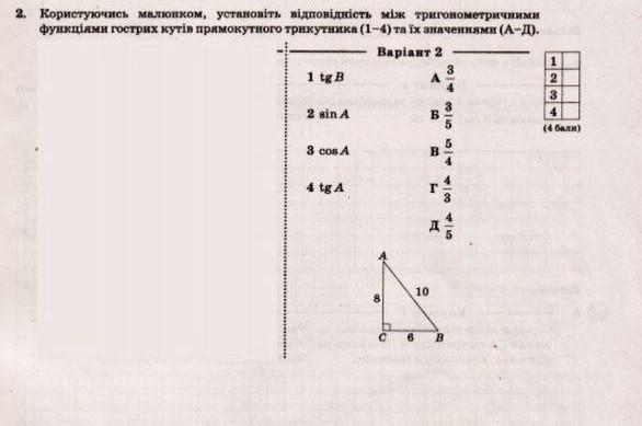 1. Г ( тангенс це відношення протилежного катета до гіпотенузи)