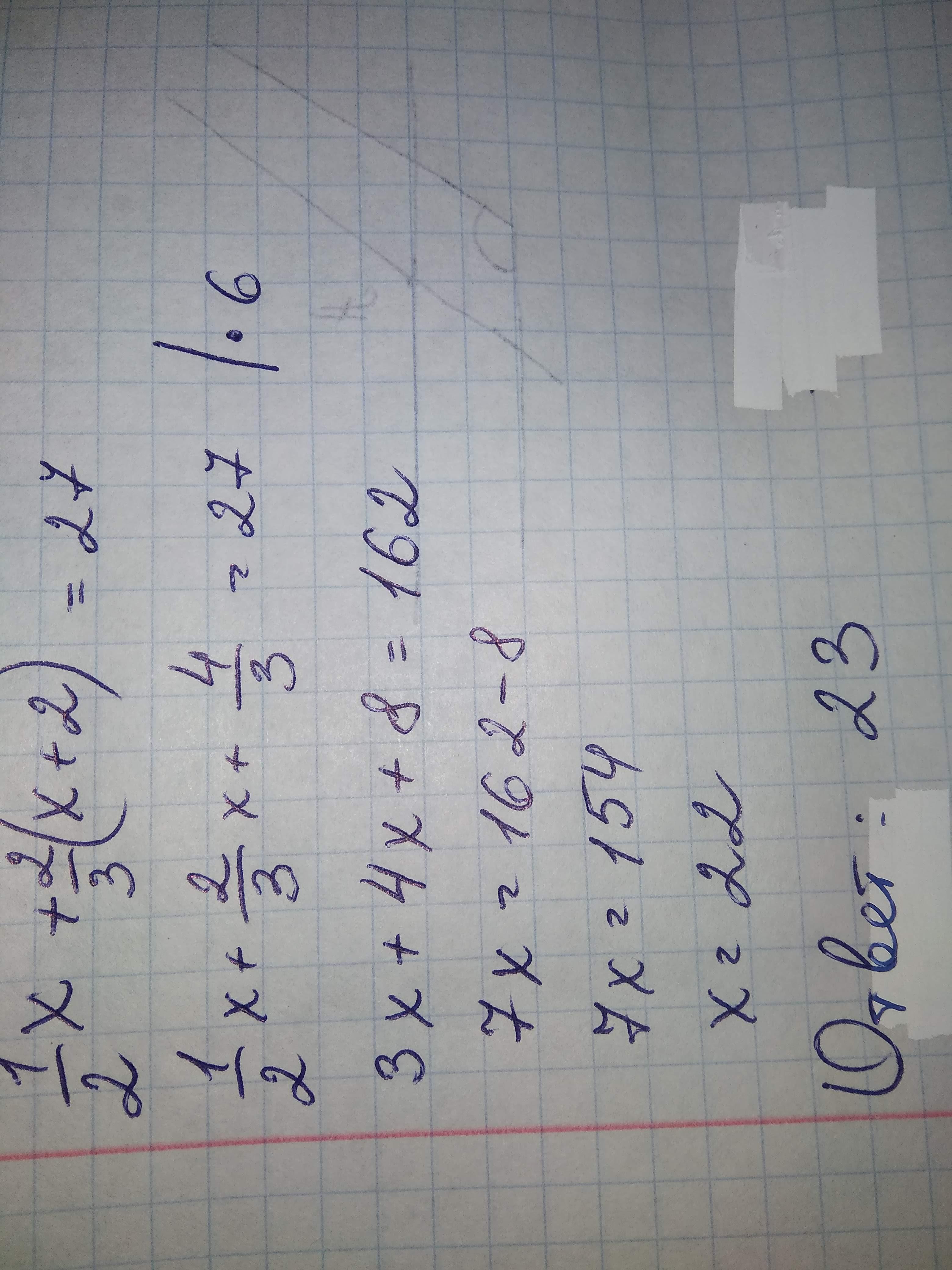 ½×2x + ⅔(2x+2) = 27