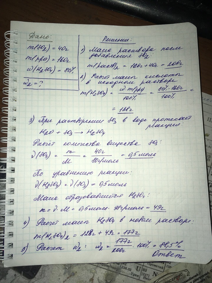 растворением 40 г. оксида серы (VI) в 160 г. раствора серной кислоты с массовой