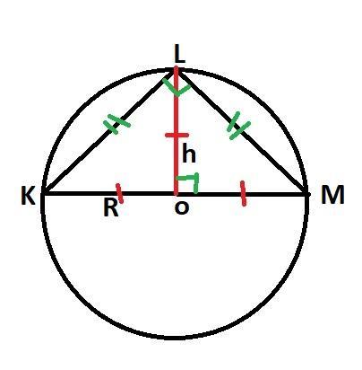 ПОМОГИТЕ ПРОШУ! ΔКLM— равнобедренный прямоугольный треугольник, около которого описана окружность; меньшая высота треугольника = 5,07 см.