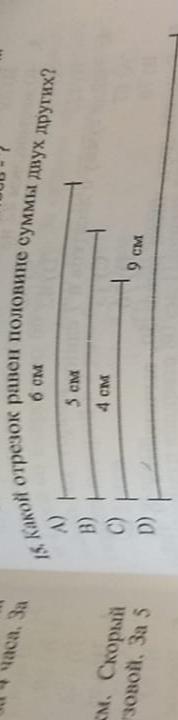 Пошаговое объяснение: если сложить отрезки А) и С) будет 6+4=10 см. а 5 см - это есть половина от 10 см