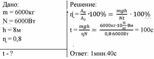 Подъёмное устройство , развивая мощность 6,5 кВт, равномерно поднимает за 4 мин груз массой 6 т. На какую высоту поднят груз? помогите пожалуйста очень надо!