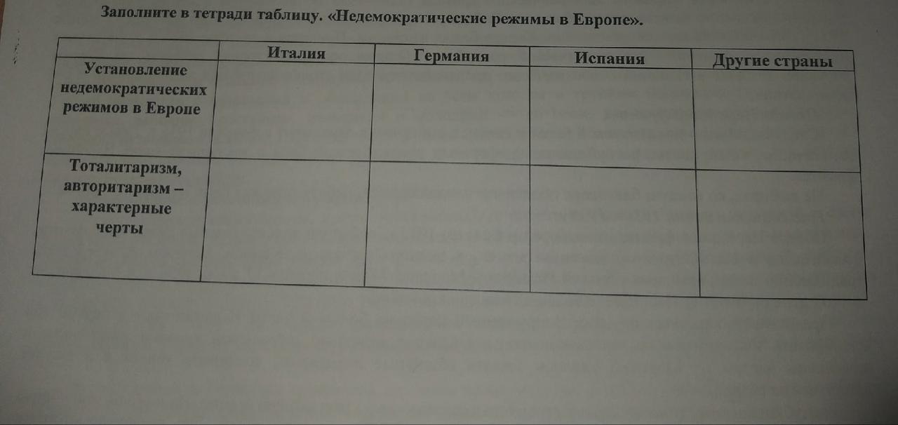 Здравствуйте всем,помогите заполнить таблицу Недемократические режимы в Европе.