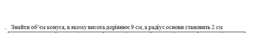 Подставляем данные значения в эту формулу и решаем его. V= 1/3*π*2²*9