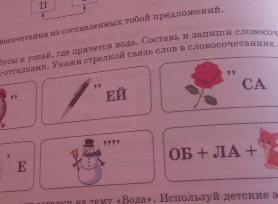 Разгадай ребус и узнай Где прячется вода Составь и запиши слове сочетание в слове отгадками укажи стрелкой связь слов в словосочетании