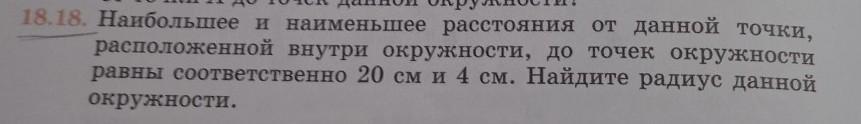 Поскольку точка расположена внутри окружности, то диаметр будет равен суме наибольшего и наименьшего расстояний от точки до точек окружности.