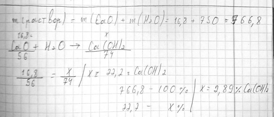 Порцію негашеного вапна CaO масою 16,8 г розчинили в 750 г води.