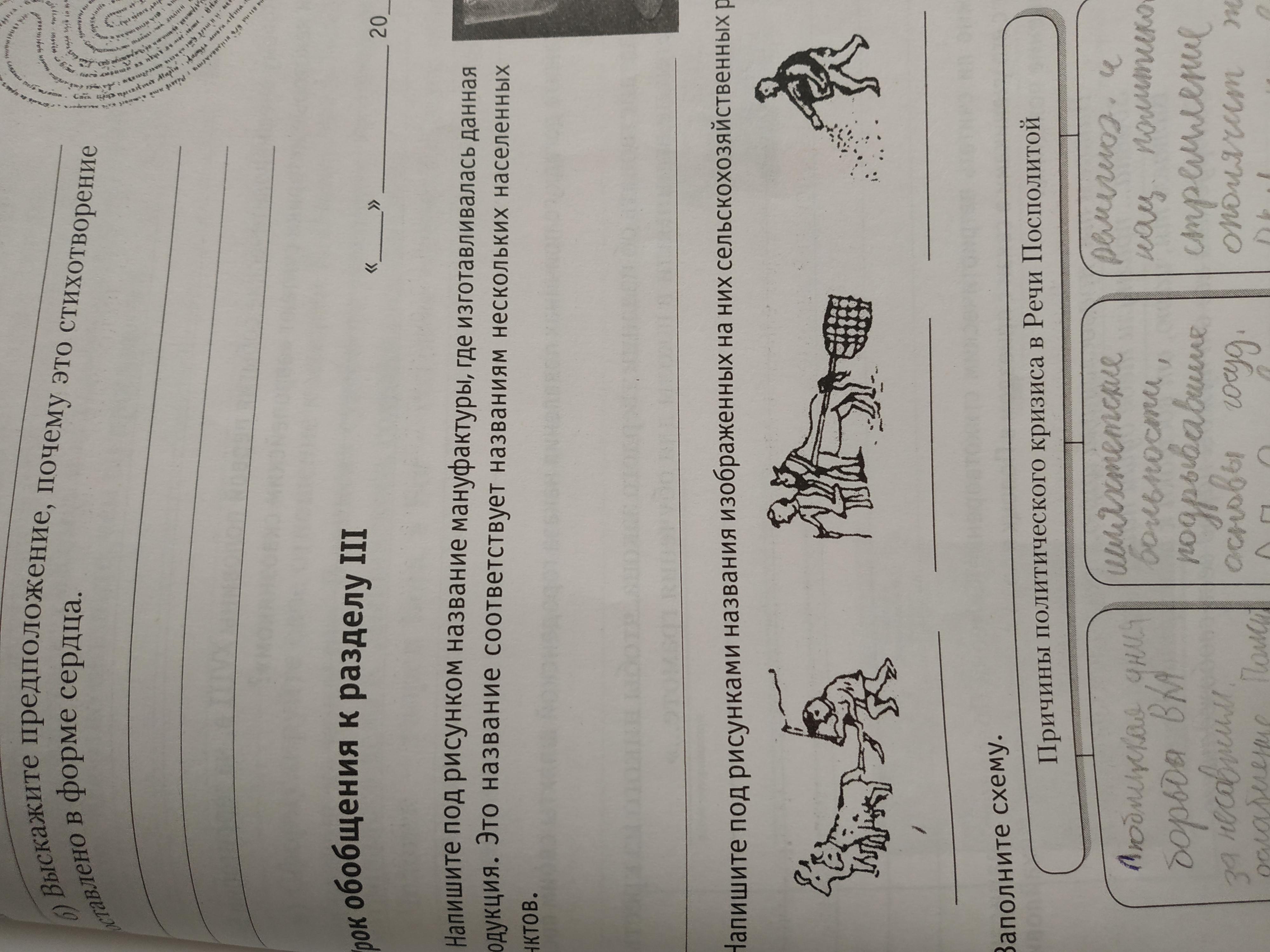 Напишите под рисунками названия изображённых на них сельскохозяйственных работ.
