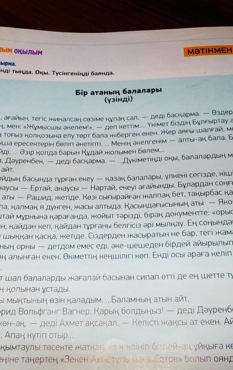 2)— Ал, былайырақ тұрындар, балаларға орын беріңдер, — деп кім айтты?(Жауабы: Басқарма айтты)