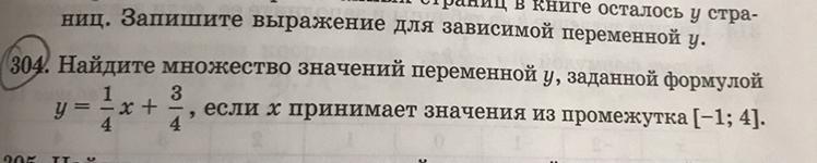 Найдите множество значений переменной y, заданной формулой y= 1/4x+3/4, если х принимает значения из промежутка [-1;4]