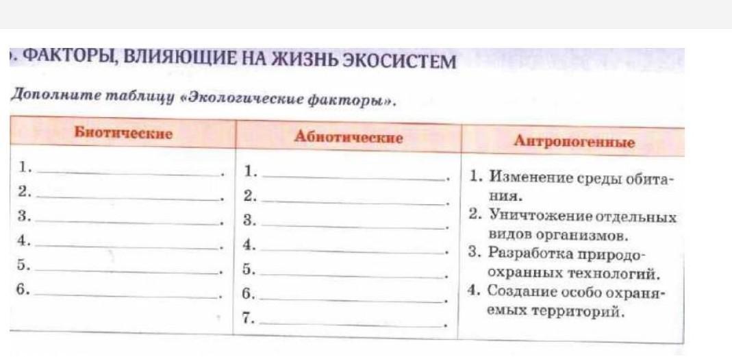 Абиотические: климатические: годовая сумма температур, среднегодовая температура, влажность, давление воздуха