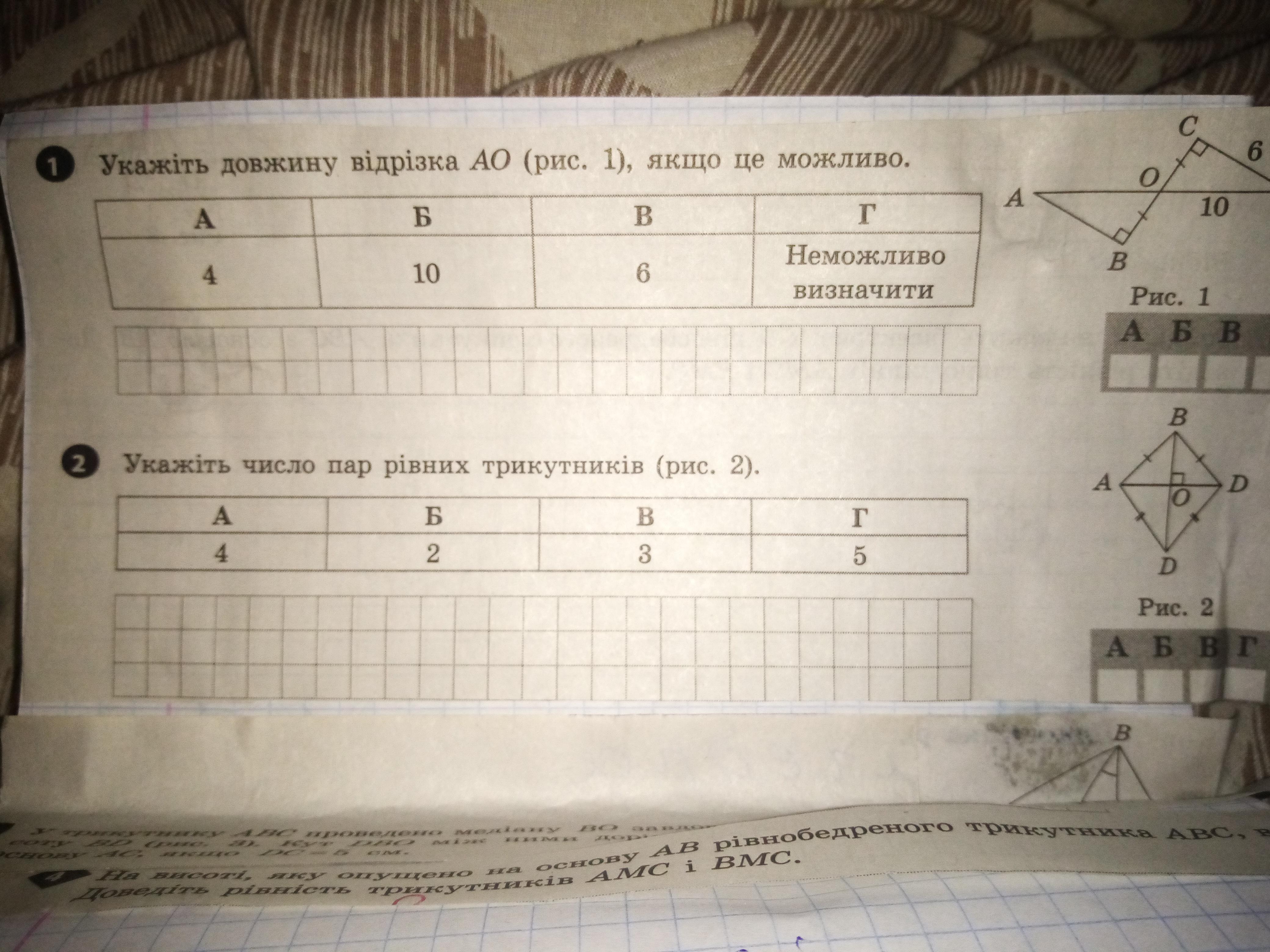 1. рассмотрим треугольники. они равные, потому что 2 угла и сторона между ними равны(AOB и COD - вертикальные, остальные по условию) Отсюда вывод: АО=ОD=10