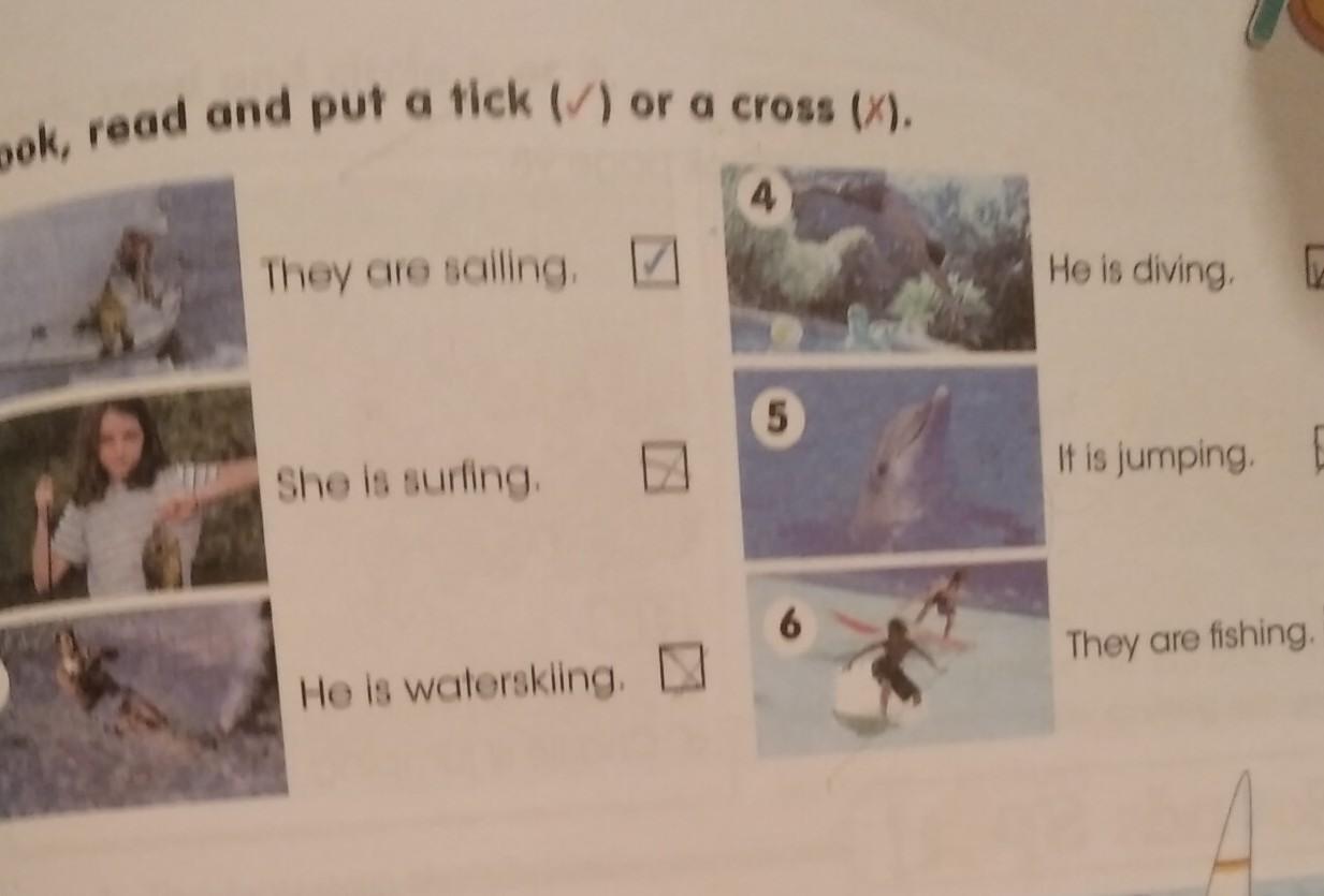 2 Look, read and put a tick (×) or a cross (✓).