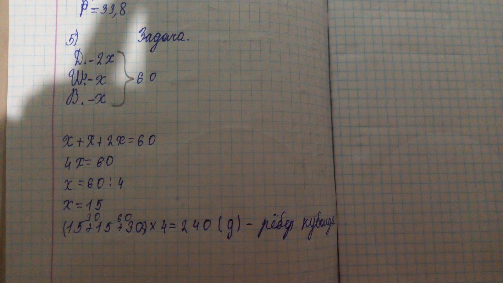длина кубоида в 2 раза больше каждого из двух его других измерений найдите произведение длин ребер кубоида зная что сумма трех его измерений равна 60 см решите задачу двумя способами