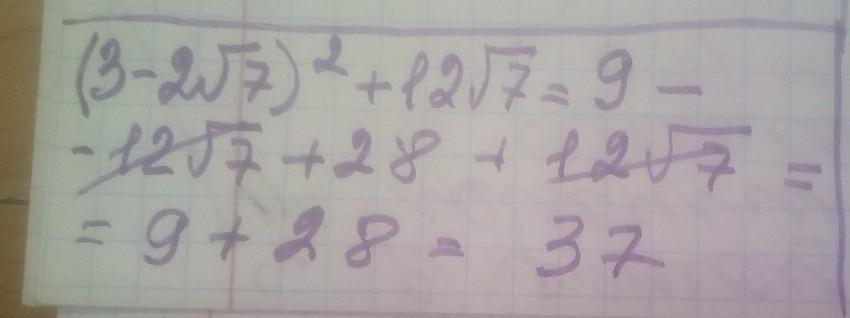 знайдіть значення виразу (3-2√7)^2 +12√7