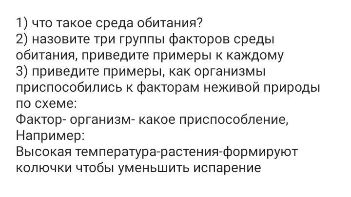3.Абиотические факторы - это факторы неживой природы, — свет, температура, влажность, геомагнитное поле Земли, гравитация, состав водной, воздушной, почвенной среды, роза ветров в данном регионе, микроэлементный состав почв и воды.