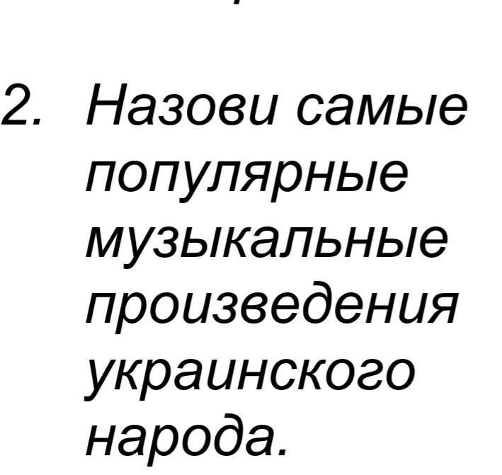 Ответ:Произведения, как правило, анонимные, потому что имена авторов, как правило, неизвестны. Народная память сохранила лишь некоторые имена авторов народных песен. Это Маруся Чурай, автор песен «Ой, не ходи, Грицю, та й на вечорниці», «Засвіт встали козаченьки» — это казак Семен Климовский — «Ехал казак за Дунай». Другая часть народных песен литературного происхождения — «Ревёт и стонет Днепр широкий» — Т. Г. Шевченко, «Ніч яка місячна» — Старицкий.