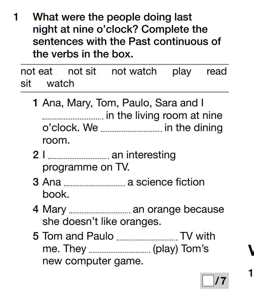 5) Tom and Paulo were not watching TV with me. They were playing Tom’s new computer game.