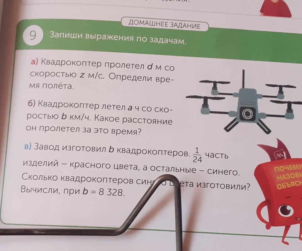 запиши выражение по задачами кадракоптер пролетел d м со скоростью z м/c. Определи время полета