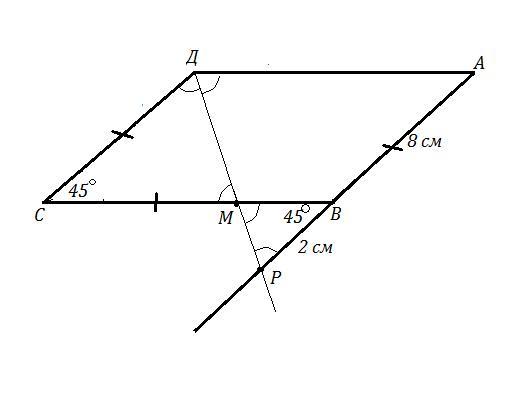 АВСД - параллелограмм , ДР - биссектриса, ∠С=45° ,