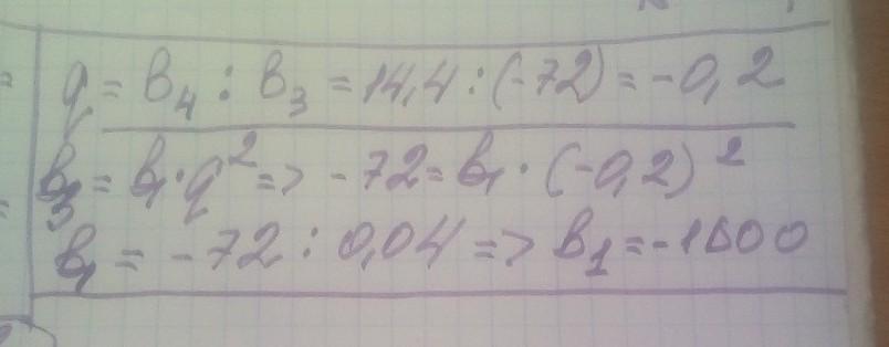 Знайти b q геометричної прогресії bn якщо b3=-72 b4=14,4