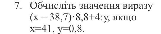 якщо x=41,a y=0.8, то (41-38,7)×8,8+4:0.8=25,24